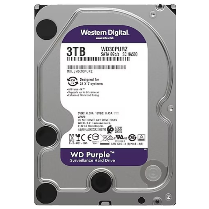 3 TB 3.5 5400RPM 64MB PURPLE WD10PURX 7/24 GÜVENLİK DİSKİ HDD