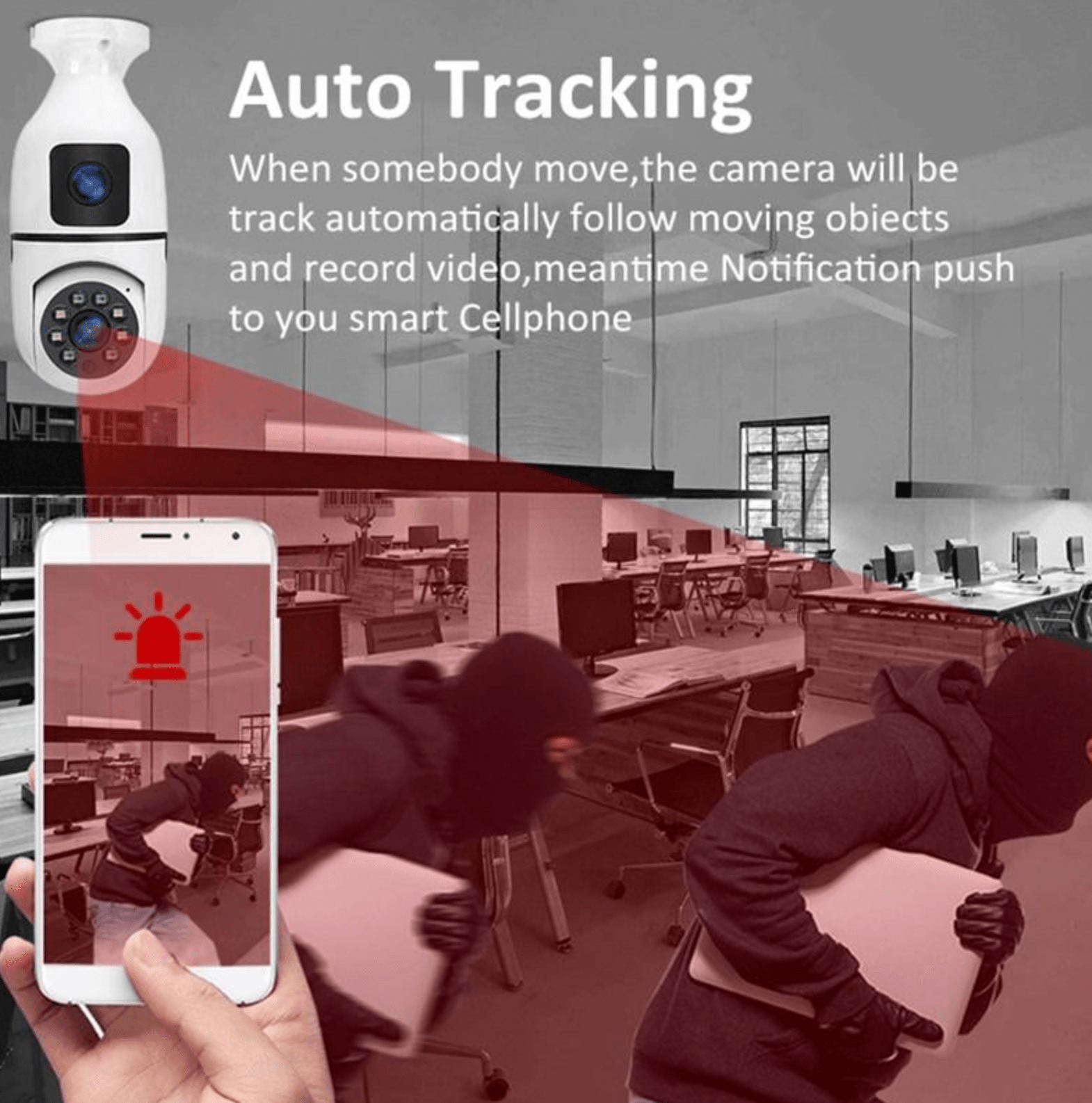 HD 4mp IP Güvenlik Gözetleme Kamerası Çift Lensli Otomatik Takip Panoramik Ampul Kamera Kablosuz WiFi PTZ Kamera CCTV IR Gece Görüş