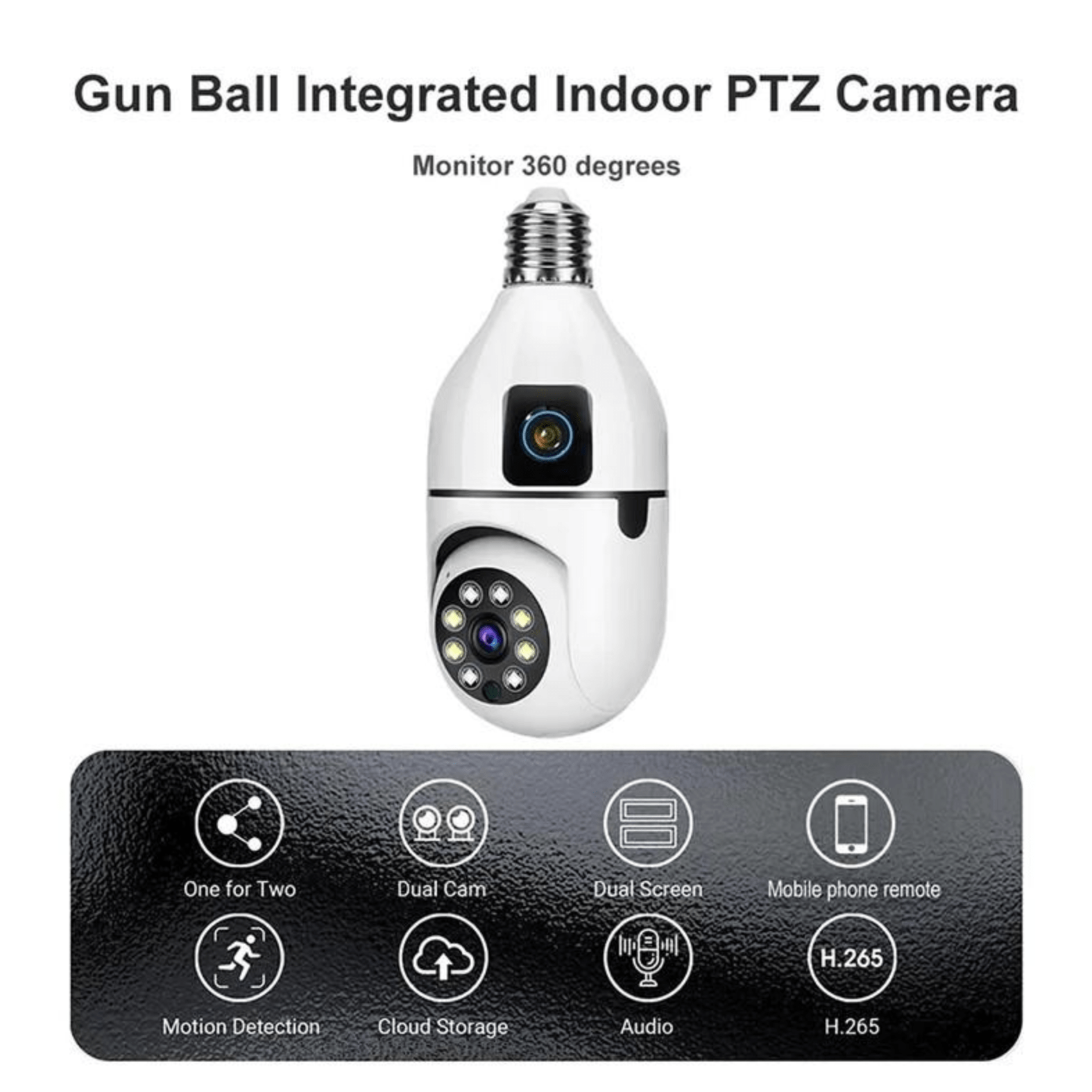 BYCAM 3606 Çift Kameralı 360 Derece Wifi Ampül Kamerası 1080p Full Hd